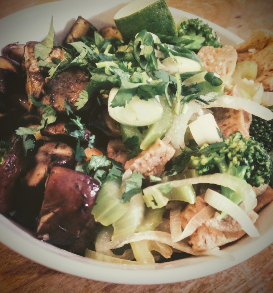 Pourquoi ? Parce que pour la suite, la combinaison les infinie, vous pouvez mettre tous les légumes sautés que vous préférez, ajouter du tofu, du tempeh, de la protéine de soya tranchée, peu importe, l’important, c’est d’avoir cette base de nouilles et d’y servir ce qu’on aime dessus.