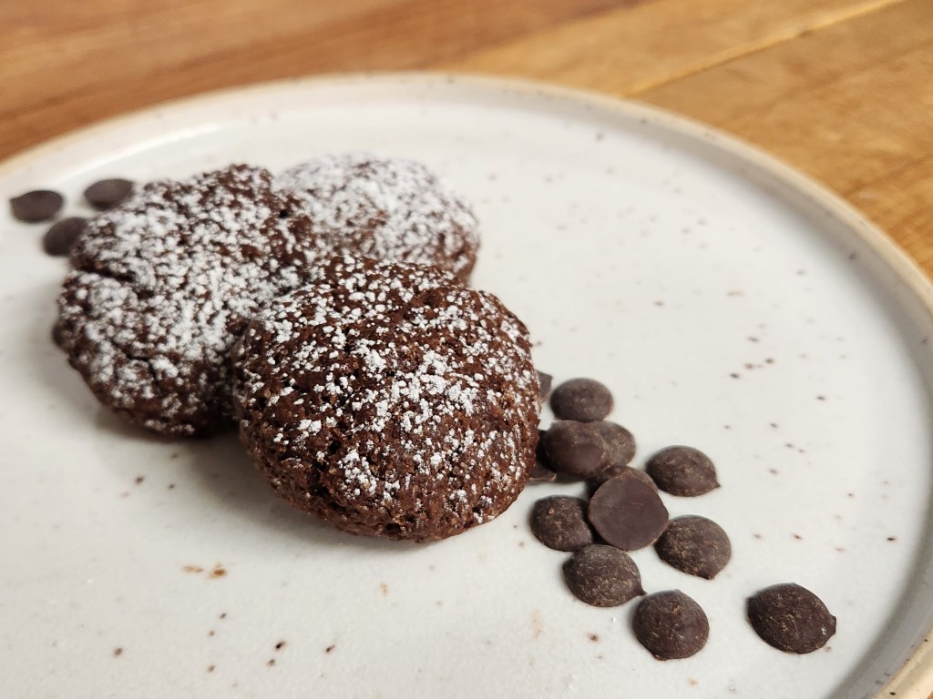 Un biscuit gourmand, fait avec des pastilles de chocolat noir bio à 73% et de l’essence de mélilot que je fabrique moi-même.